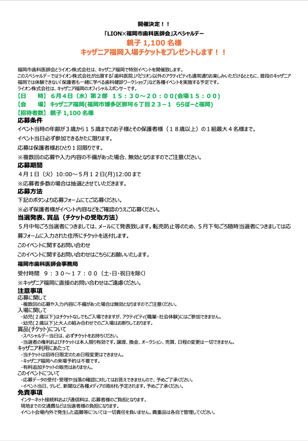 3. 「LION×福岡市歯科医師会」 スペシャルデーinキッザニア福岡